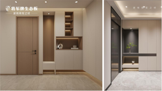家的格調(diào),從踏入玄關(guān)的那一刻便開始譜寫。這個過渡空間,不僅連接著內(nèi)外世界,更承載著家的第一印象。將軍牌生態(tài)板打造的多功能立柜,以沉穩(wěn)的灰色與溫潤的原木色從容交匯,在方寸之間勾勒出從容氣度。每一處接縫的精準處理,每一道木紋的完整呈現(xiàn),都在訴說著對細節(jié)的執(zhí)著追求。