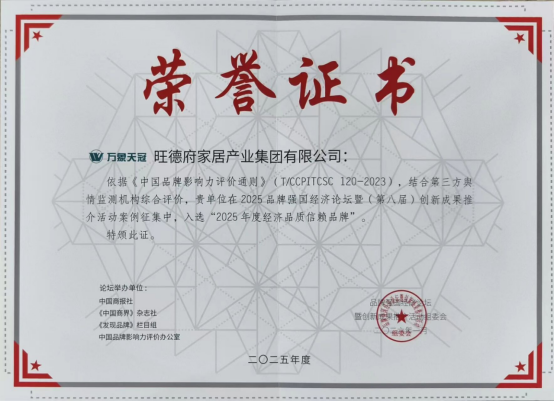 憑借在家居建材行業(yè)的持續(xù)深耕與突破性創(chuàng)新實踐,旺德府家居集團及旗下核心品牌萬象板材、萬象天冠高端實木全屋定制,從眾多參選企業(yè)中脫穎而出,一舉摘得品牌強國“2025年度智能制造標(biāo)桿企業(yè)”、“2025年度創(chuàng)新(板材行業(yè))十大國民優(yōu)選品牌”、“2025年度經(jīng)濟品質(zhì)信賴品牌”三項重磅榮譽,為集團高質(zhì)量發(fā)展的品牌進(jìn)階之路再添濃墨重彩的一筆。