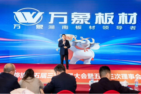 常規(guī)議程后,年會進入重磅分享環(huán)節(jié)。旺德府集團大客戶業(yè)務中心總經(jīng)理湯科應邀登臺,深情回顧了萬象板材深耕行業(yè)二十七載的發(fā)展歷程,全面介紹品牌旗下高端板材、高端輔材兩大核心產(chǎn)品矩陣,全方位展現(xiàn)品牌硬核產(chǎn)品實力。針對萬象天冠高端衣柜定制的“四化” 體系,湯科總經(jīng)理進行了專業(yè)、細致的深度解讀,幫助現(xiàn)場同仁進一步深化對萬象品牌產(chǎn)品體系與服務能力的認知。