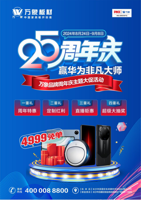 歲月悠悠,匠心筑夢(mèng)。在這個(gè)碩果累累的美好時(shí)節(jié),萬(wàn)象板材迎來(lái)了其輝煌歷程中的又一個(gè)重要里程碑——25周年慶典。值此25周年慶典之際,萬(wàn)象板材心懷感恩,特推出“萬(wàn)象25周年慶主題大促活動(dòng)”,萬(wàn)象板材精心準(zhǔn)備了一系列超值優(yōu)惠與精彩活動(dòng),誠(chéng)邀您共襄盛舉。
